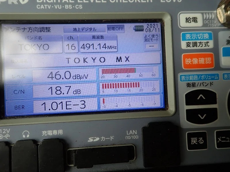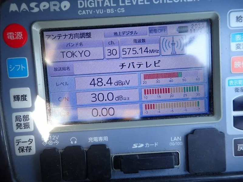 そこで、テレビ端子での測定レベルと品質の確認、テレビ機器やケーブルの確認、アンテナ直下でのレベル品質の確認など、現状の把握を行います。
