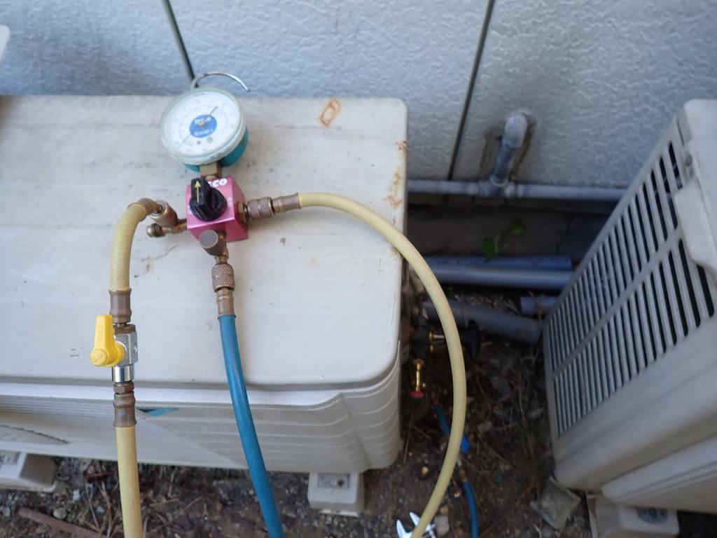ゲージを確認してガスを室外機に集めます。