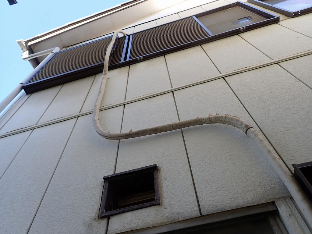 埼玉県越谷市にエアコン配管化粧カバーの取り付け工事で伺いました。 当ホームページからのご依頼です。 テープ巻き仕上げでテープがボロボロになっています。 こちらにカバーを付けたいとの…