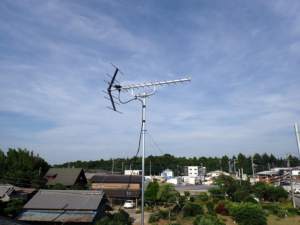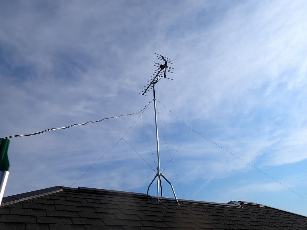 埼玉県春日部市の工事の続きです。 最後にアンテナの氏を行います。 アンテナが古いので新しく更新をご希望です。 屋根上に30素子クラスのアンテナが2本と12素子のVHFアンテナ、FM…
