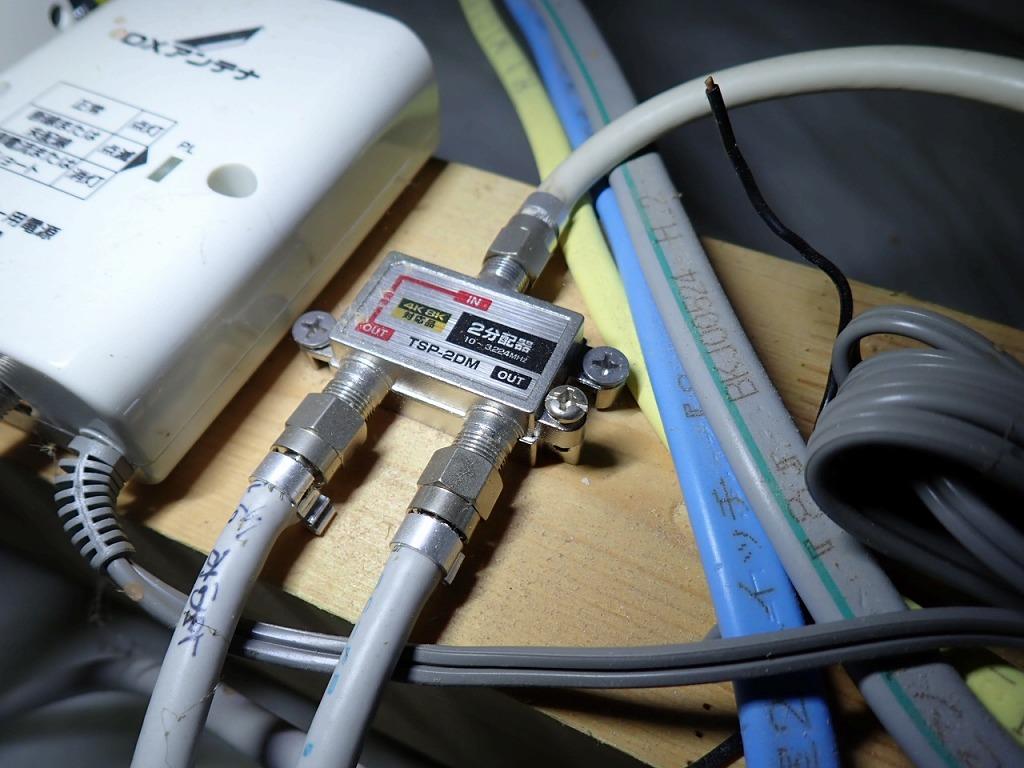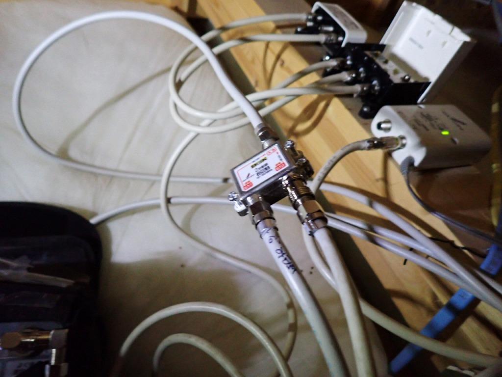 千葉県柏市内のお宅に伺いました。 クローゼット内にアンテナ端子が有るそうですがそれが使用出来無いので使えるようにして欲しいという事です。 確かにアンテナ端子が有ります。 この中にハ…