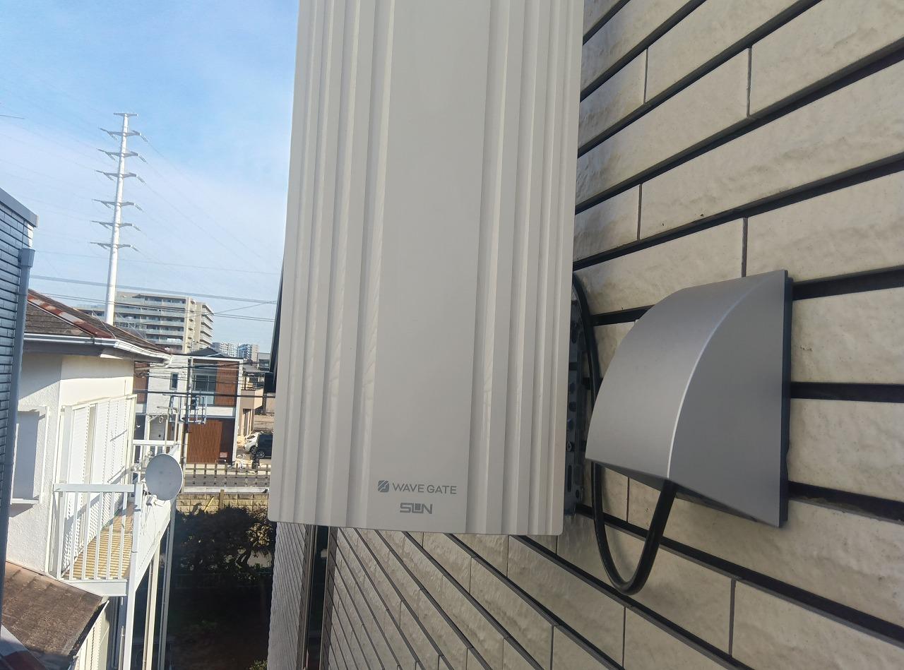 外壁色に合わせて白色の平面型アンテナを使用しました。