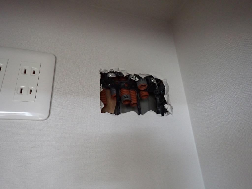 千葉県野田市に有線LANの配線工事で伺いました。 1階リビングにONUが有り2階の居室にLANを引きますがその部屋には配管は無く 隣の部屋に配管が有るので隣の部屋まで配管を使って配…