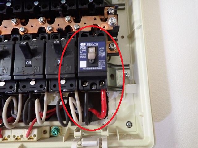 分電盤の空きスペースにEV用の専用漏電ブレーカーを