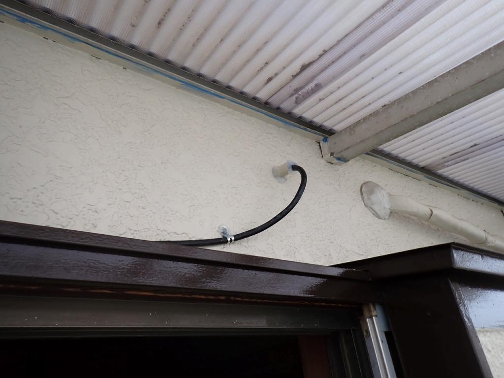 ケーブルを室内側に入れました。