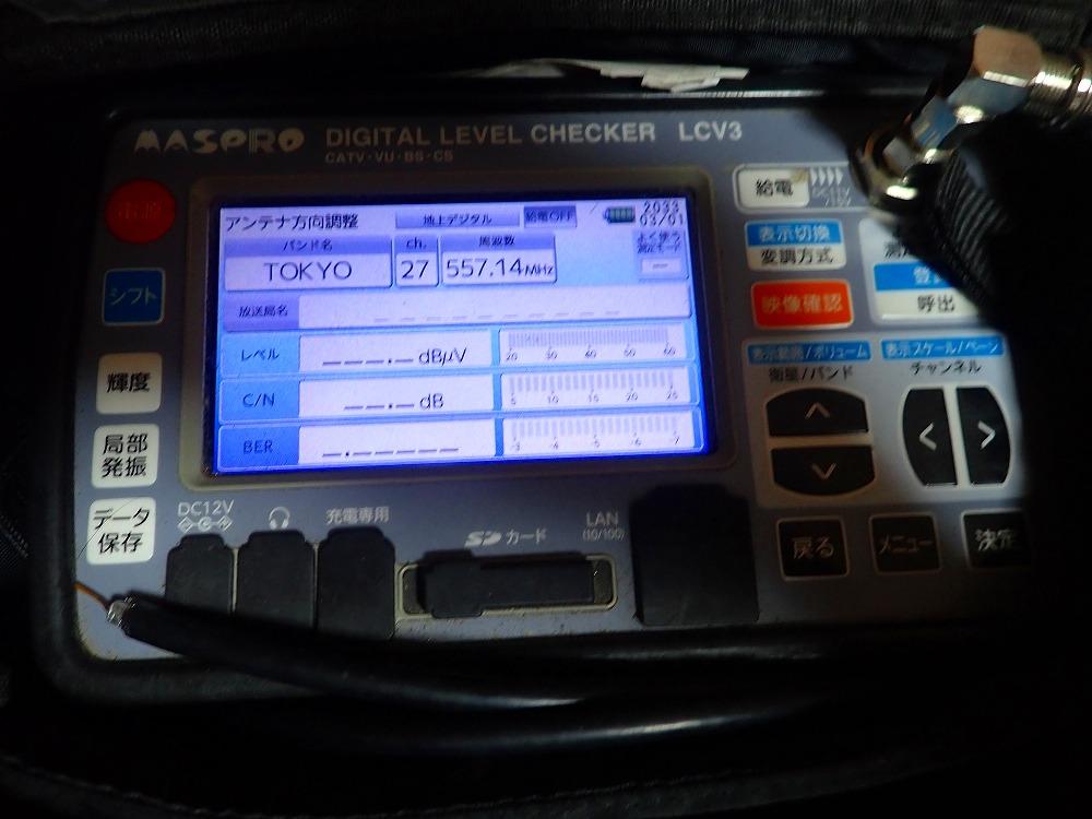 主に、現状の把握、テレビ端子での測定レベルと品質の確認、テレビ機器やケーブルの確認、アンテナ直下でのレベル品質の確認、方向調整での改善確認、ブースターの調整での改善確認の作業となります。